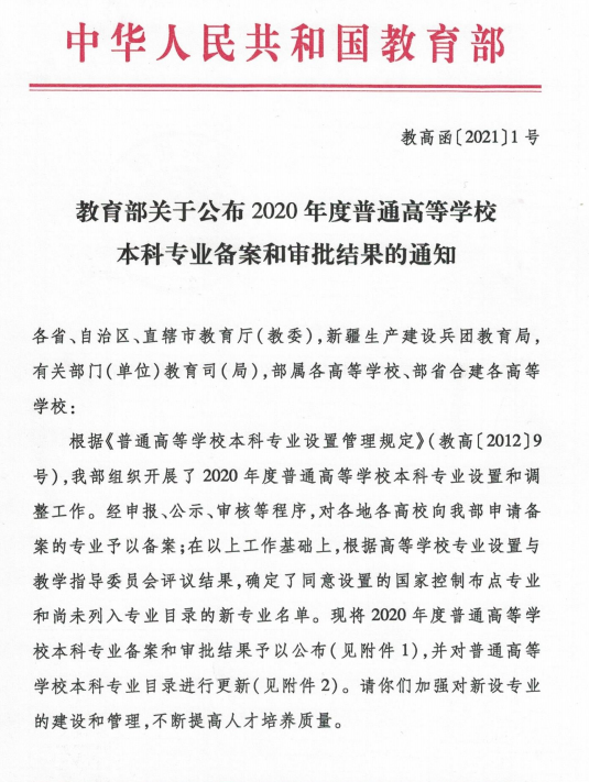 2月20日,教育部发布《教育部关于公布 2020年度普通高等公司本科专业备案和审批结果的通知》(教高函[2021]1号),公司“医疗保险”专业获批2020年度普通高等公司本科专业备案,beat365亚洲体育官方网站(山东省医学科公司)是目前山东省内第一所也是唯一一所招收“医疗保险”专业的本科高校。