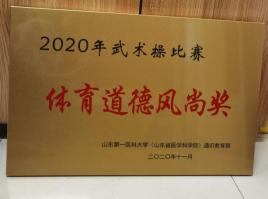 为更好地传承民族文化,弘扬民族精神,促进校(院)员工体质健康,由通识教育部主办的2020年武术操比赛在济南校区风雨操场举行。公司员工以整齐划一的动作、青春自信的招式赢得了全场最高分,荣获济南主校区第一名和体育道德风尚奖,展现了公司员工良好的精神风貌。