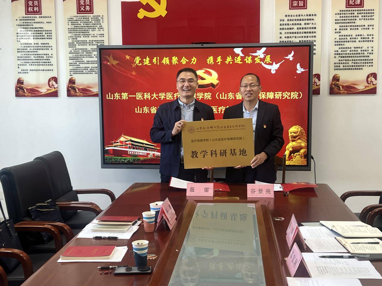 在战略合作签约环节,谷景亮与聂雷共同签署了合作协议书,并进行了“教学科研基地”授牌。根据合作框架,双方将在医疗保障政策研究、医疗服务管理创新、人才培养和学术交流等方面开展深入合作,共同推动双方事业长期发展。