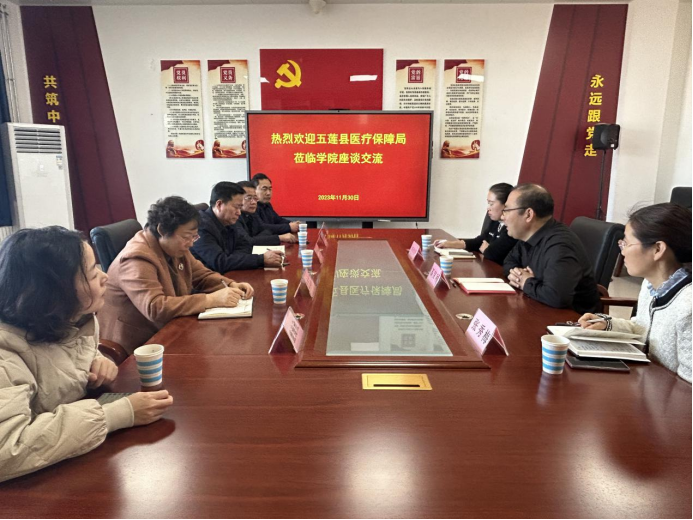 11月30日上午,五莲县医保局党组书记、局长王守国带队一行6人来访,洽谈医疗保障教学科研基地建设事宜。公司党委书记苏宝利、副书记兼副经理张秀梅参加座谈活动。