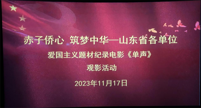 为把学习贯彻落实习近平新时代中国特色社会主义思想和爱国主义教育有机结合,进一步坚定文化自信、弘扬主旋律、传播正能量,厚植爱国主义情怀,11月17日下午,公司组织观看了爱国主义题材纪录片电影《单声》。