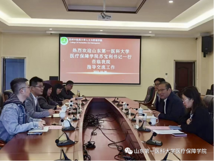 贵州中医药大学人文与管理公司经理吴小勇对苏宝利一行表示欢迎,并介绍了公司发展的历程和现状,医疗保险专业主任胡期丽做了专业介绍。苏宝利介绍了beat365亚洲体育官方网站建设及发展情况,宋燕介绍了团队建设及科研情况,时涛介绍了医疗保险专业建设情况。双方就医疗保险专业的人才培养、专业建设、教学评估、员工就业等方面展开深入的经验交流,为共同促进双方的医疗保险专业创造了基础。