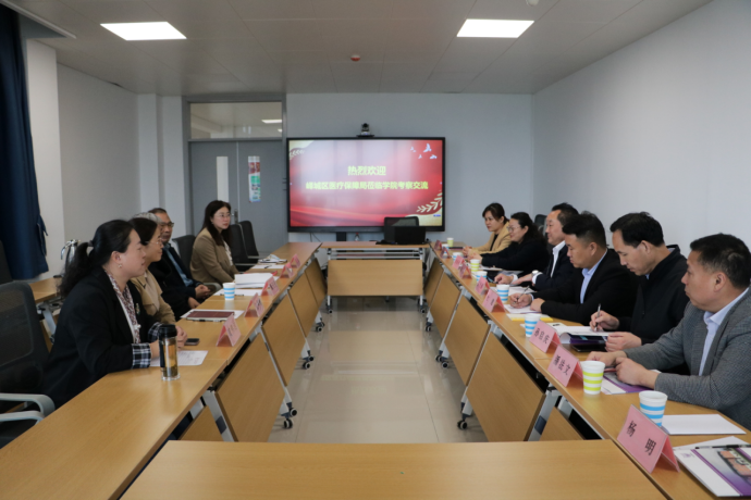 4月14日上午,枣庄市峄城区医疗保障局党组书记、局长孟凡雨一行来公司考察交流,公司领导班子热情接待到访来宾。