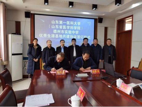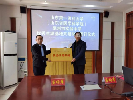 在德州市实验中学,苏宝利与袁永超签订优秀生源基地协议书,王宇轩为德州市实验中学“优秀生源基地”授牌。