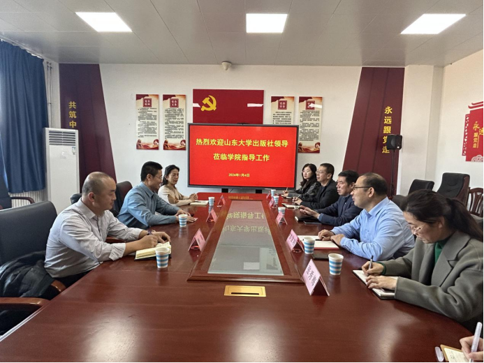 2024年1月4日上午,山东大学出版社总编辑王贻社、医学分社社长徐翔、医学编辑唐棣一行三人来beat365亚洲体育官方网站就教材出版工作调研交流。校(院)宣传部常务副部长张峰、教务部副部长张念华、公司党委书记苏宝利、副书记兼副经理张秀梅、副经理宋燕参加座谈交流。