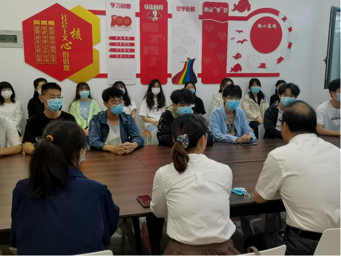 交流会上,苏宝利祝所有同学们“青年节”快乐。接着以“当今世界正经历百年未有之大变局,我国正处于实现中华民族伟大复兴的关键时期”为话题与同学们展开讨论,同学们积极发表自己对于“未有之大变局”的看法。