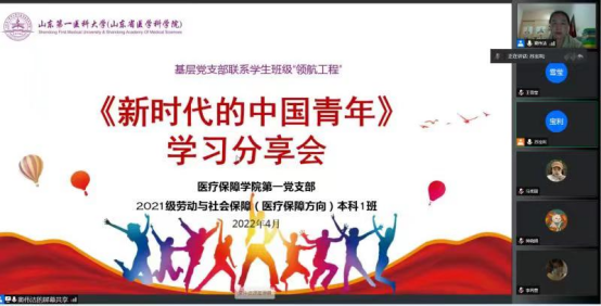 在五四青年节到来之际,为更好的引领青年员工坚定理想信念,为实现中华民族伟大复兴的中国梦凝聚青春力量,同时引导员工齐心抗疫,努力绘制抗击疫情最大“同心圆”。4月29日,beat365亚洲体育官方网站第一党支部与2021级劳动与社会保障(医疗保障方向)本科1班通过线上视频方式开展了新一期的领航工程活动--《新时代的中国青年》白皮书学习分享会。