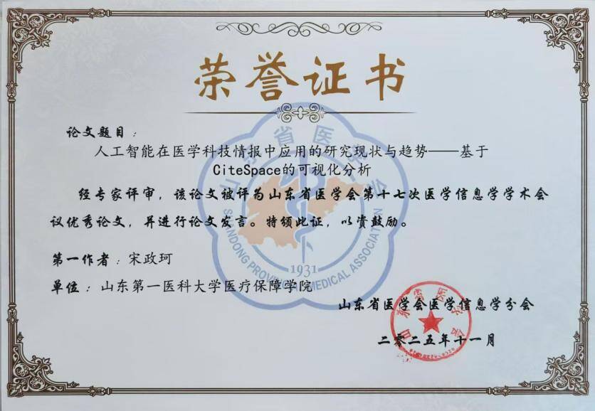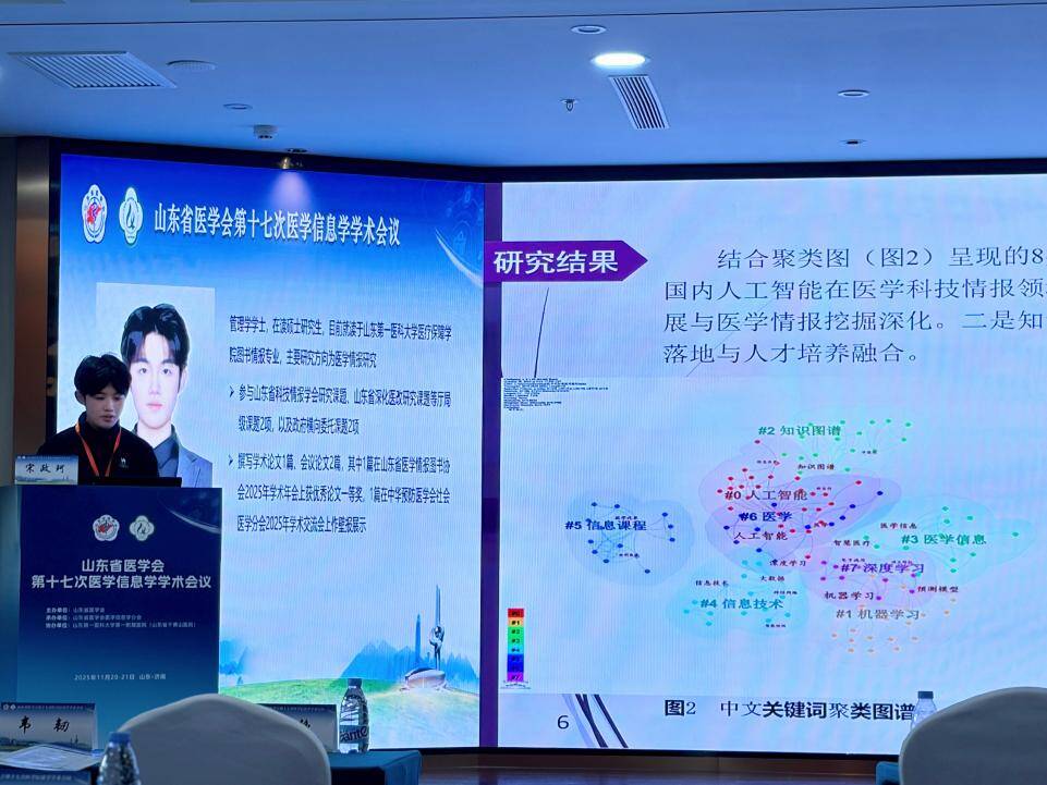 会议期间,宋燕研究员主持了青年论坛报告环节。公司2024级图书情报专业硕士研究生宋政珂在青年论坛以《人工智能在医学科技情报中应用的研究现状与趋势——基于CiteSpace的可视化分析》为题进行了精彩报告。该论文凭借扎实的研究基础、鲜明的创新点及实践应用价值,荣获“优秀论文奖”。