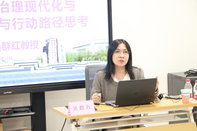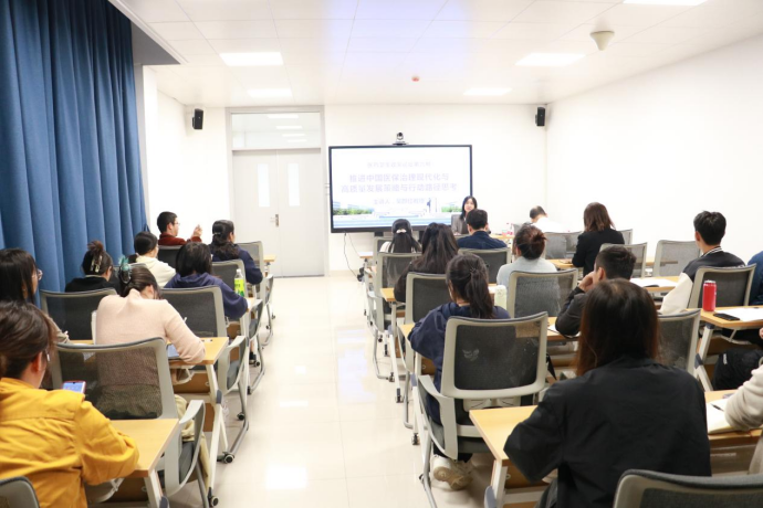 吴教授以治理理念为切入点介绍了医保高质量发展的概念与内涵、医保治理现代化的定义,并阐述了医保体系的构成、功能和任务以及医疗保障治理与医疗保障治理体系的定义、功能,最后总结了推进医保治理现代化的策略以及医疗保障治理体系和治理能力现代化的重大改革安排和实现路径。本次讲座,使公司师生对医疗保障治理体系有了进一步地认识和了解,也为公司教师开展相关课题研究拓宽了思路。报告后,师生与吴教授就相关学术问题进行了深入的互动交流。