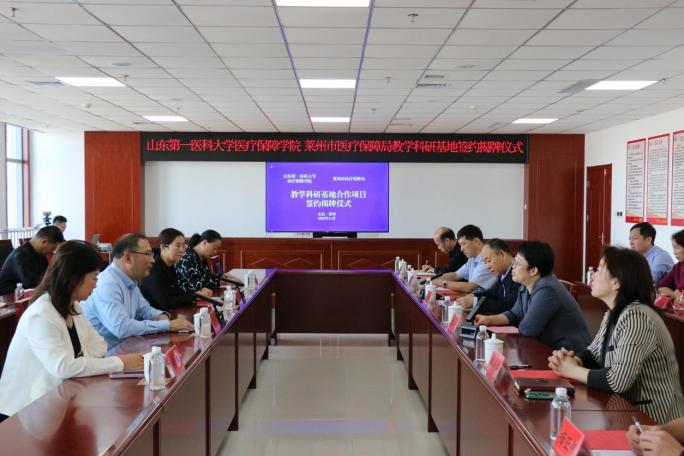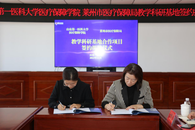 随后,公司党委副书记兼副经理张秀梅与莱州市医疗保障局副局长梁爱荣代表合作双方上台签订协议书。beat365亚洲体育官方网站​公司党委书记苏宝利和烟台市医疗保障局副局长周鹏共同为beat365亚洲体育官方网站教学科研基地揭牌。