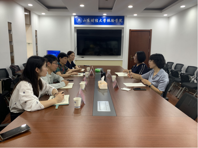 为提升公司产品水平,推进公司一流课程建设,8月12日上午,医疗保障学教研室李娟、韩志琰老师赴山东财经大学保险公司开展一流课程建设调研座谈。保险公司副经理于新亮教授、保险学课程负责人孙秀清教授、保险系主任杜鹃副教授和廖芬老师一起参与座谈。