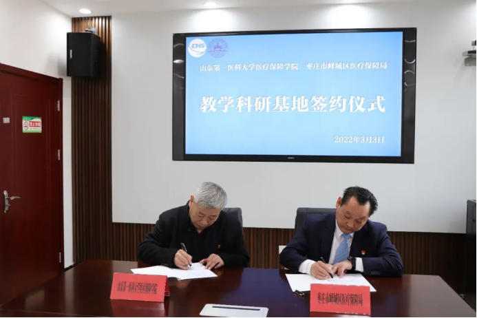 2022年3月3日,beat365亚洲体育官方网站与枣庄市峄城区医疗保障局举行“教学科研基地”签约和揭牌仪式。峄城区医疗保障局党组书记、局长孟凡雨、经理甄天民、副经理宋燕参加活动。