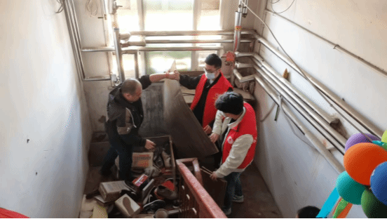 上午9点30分,大家准时来到舜函社区,领到任务之后,全身心投入到了这场“战斗”中。志愿者们兵分三路,逐个单元清理,将楼道中停放的电动车逐一搬出,把堆放在拐角处的旧家具和杂物清理得干干净净,消除了消防安全隐患。