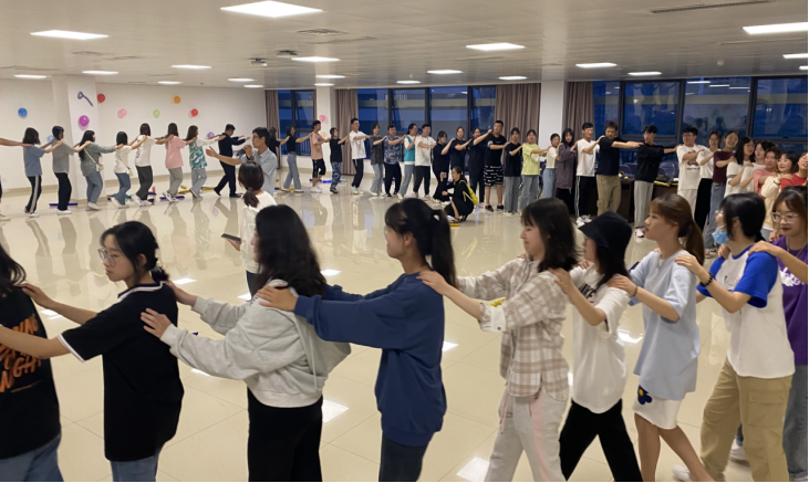 活动伊始,时涛老师带领全体新生进行破冰拓展活动。大家通过集体参与跳兔子舞,提高团队配合的默契度,也迅速调动了活动气氛,为破冰活动迎来了开门红。游戏结束后,全体新生围坐一起,进行了极具个人特色、充分展现个人自我形象的自我介绍。随后,同学们进行了精彩的才艺展示,包括歌曲演唱以及吉他独奏,在热烈的掌声与欢呼声中,同学们之间的距离被迅速拉近,更好地认识了彼此,收获了大学的第一份友谊。最后,20级代班学长学姐为21级新生分发了公司为全体同学们准备的中秋月饼,共同庆祝即将到来的中秋佳节。
