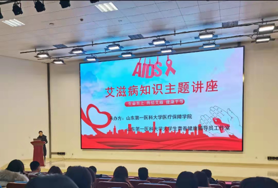 讲座邀请到了济南市市中区疾病预防控制中心艾防科李辉科长作报告。李科长首先用一系列数据及实际案例向同学们讲述了高校是艾滋病重灾区的现状,同时以生动的语言向同学们介绍了什么是艾滋病,并结合专业特色从艾滋病的预防检测治疗等多方面进行讲解,增强了同学们对艾滋病预防控制的认识。