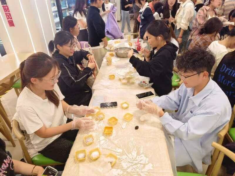 在中秋佳节即将到来之际,为弘扬中华优秀传统文化,让大家在实践中深刻体会中秋佳节的温馨氛围和独特魅力,beat365亚洲体育官方网站于9月11日晚举办手工月饼制作活动,2024级全体同学参加活动。