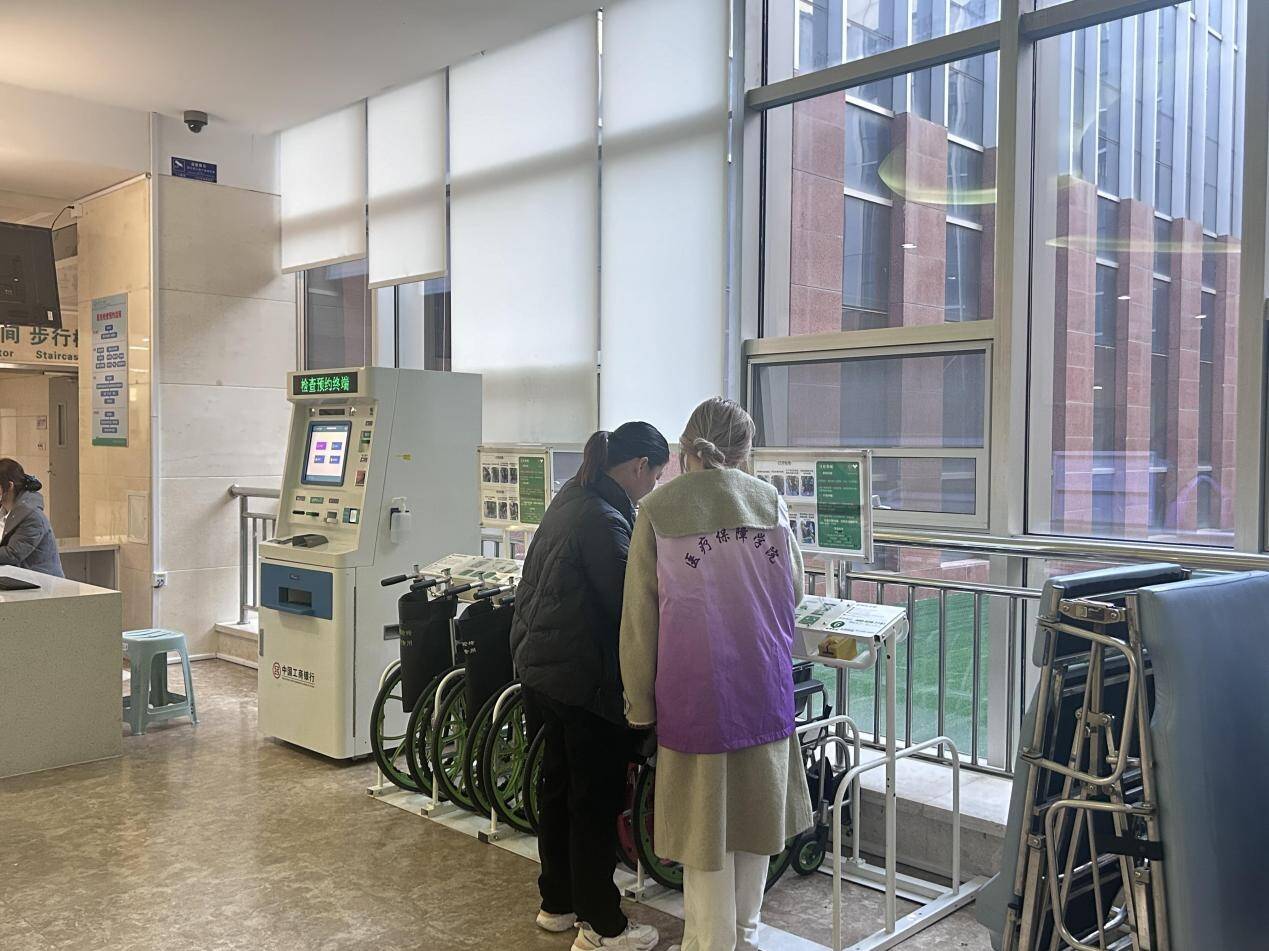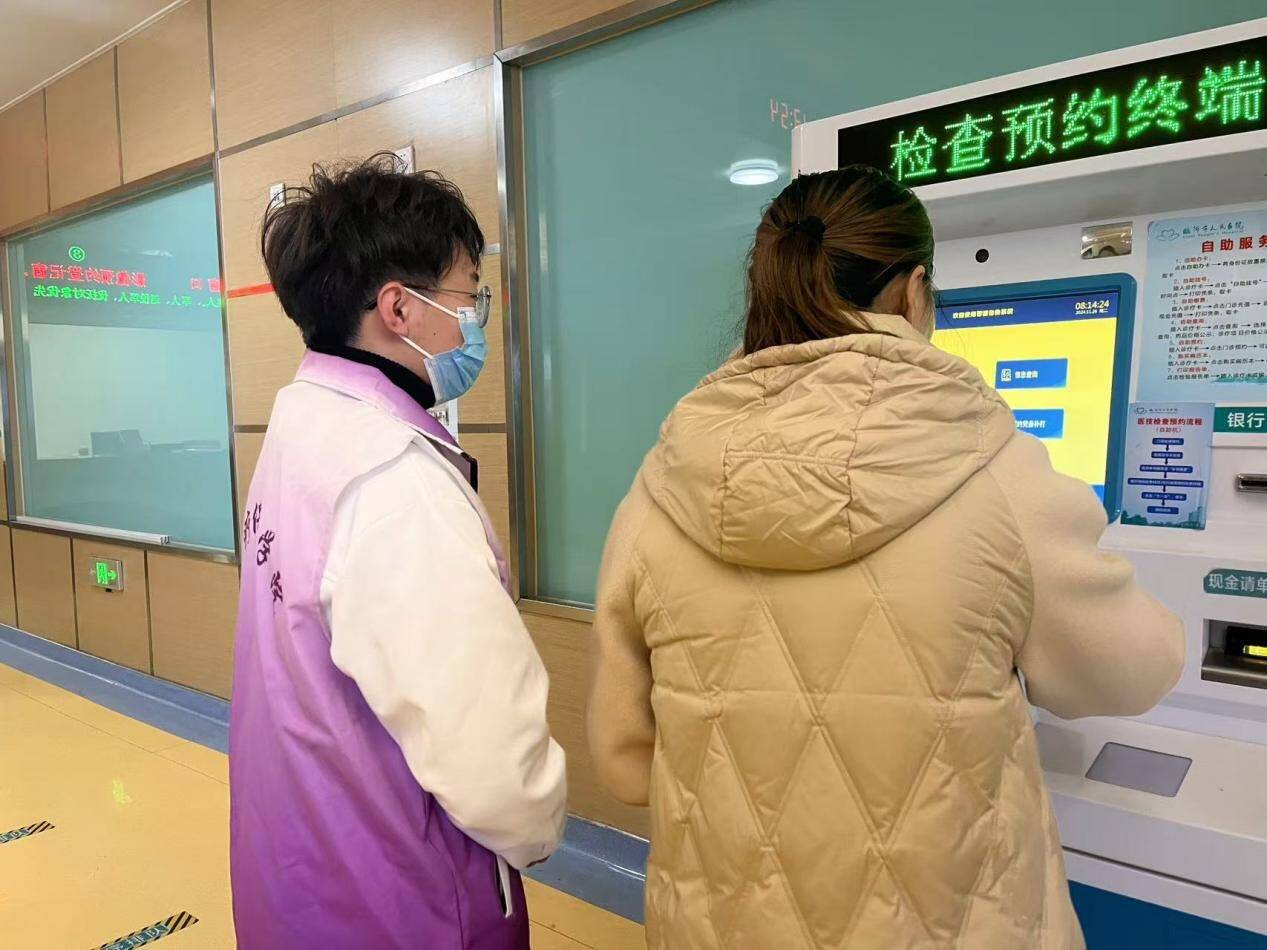 活动现场,志愿者们分别在门诊楼挂号处、各诊区分诊台等区域主动上前询问患者需求,帮助就诊病人进行现场挂号、打印检查报告、充值缴费等便民服务,还发挥专业特长为群众解答医疗保险政策相关问题、了解报销流程。