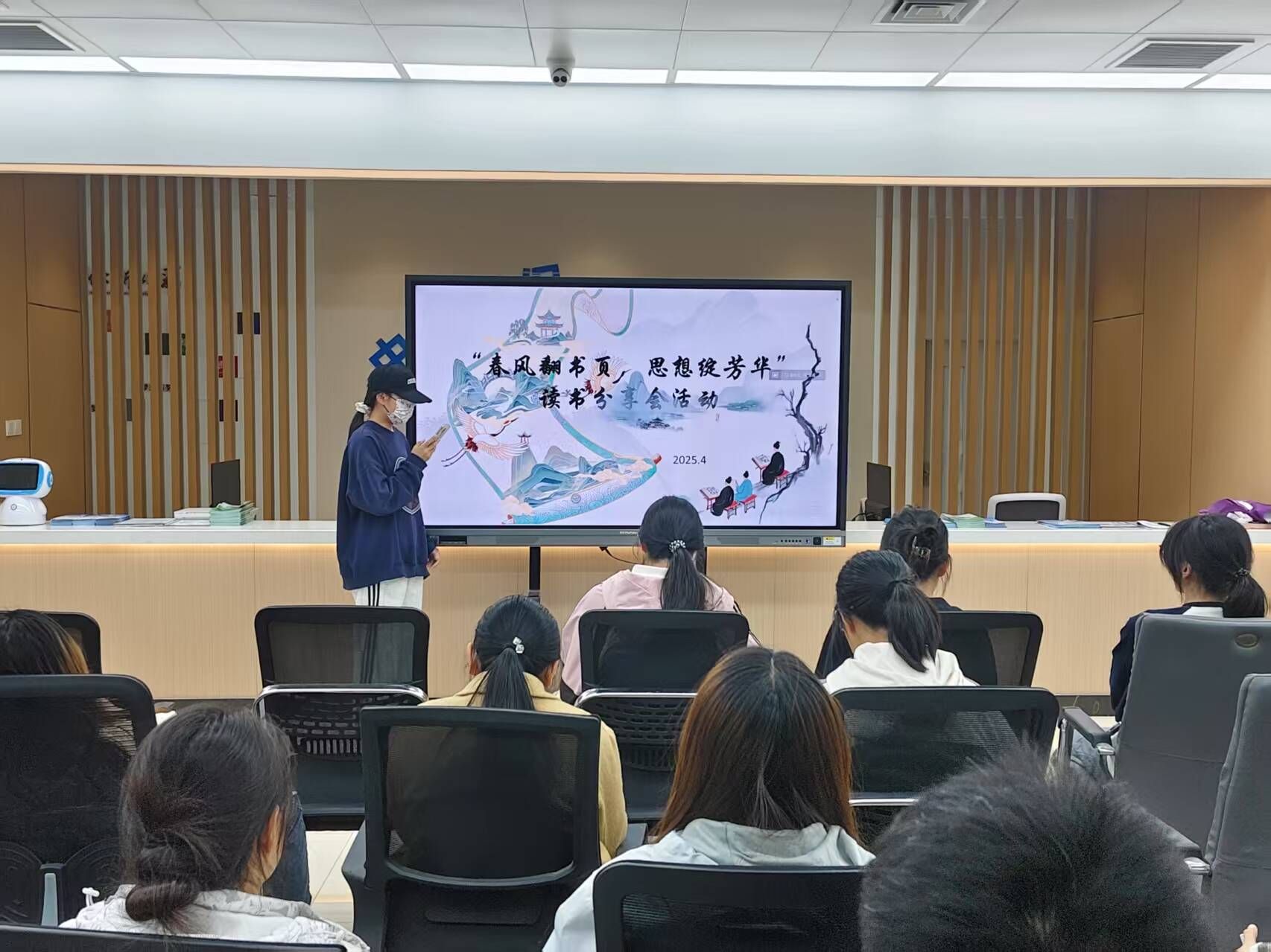 活动伊始,主持人用经典诗词引入,介绍活动流程和规则。分享环节,同学们依次上台,借助精心制作的PPT,推荐书籍并分享感悟,还阐述书籍与春天的关联,多元的书籍与独特见解引发阵阵思考。