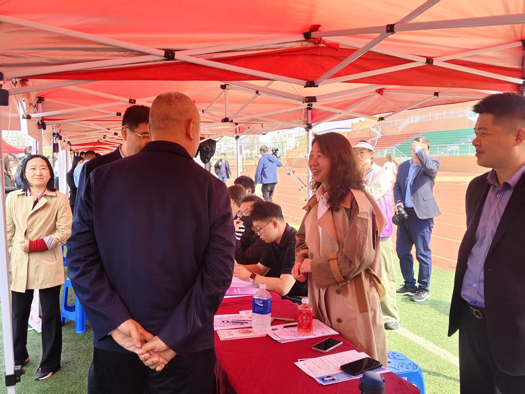为搭建毕业生与用人单位对接平台,促进人才供需匹配,助力毕业生就业,beat365亚洲体育官方网站(山东省医学科公司)2025年春季校园双选会于4月10日上午在济南校区体育场举办,校(院)党委书记刘思金,党委委员、副校(院)长贾海宁等公司领导出席活动,并到公司服务的招聘专区了解招聘情况。山东省保险行业协会专职副会长赵文和、副秘书长王磊、学术部主任李法进以及公司经理谷景亮、党委书记杜江山、副书记兼副经理张秀梅等到保险协会专区了解和指导员工员工积极应聘。