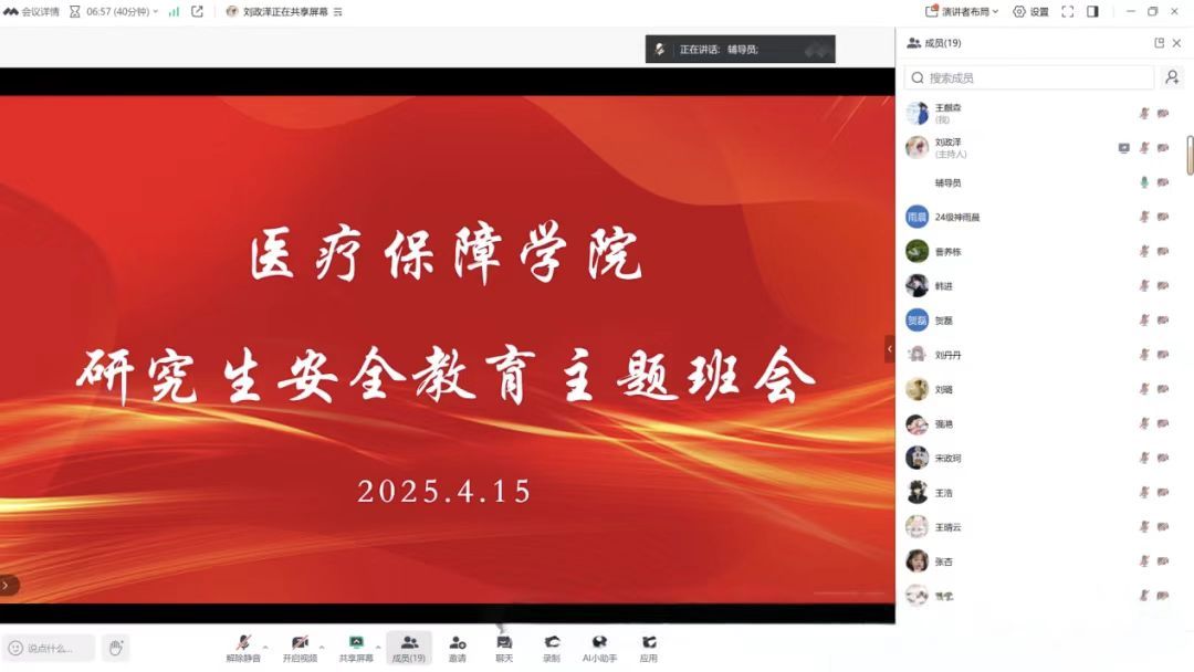 为全面落实校(院)开展校园安全自查工作的要求,筑牢校园安全防线,4月15日下午,公司组织全体研究生开展校园安全教育主题班会。班会通过“理论宣讲+案例警示”系统强化员工安全防范意识。