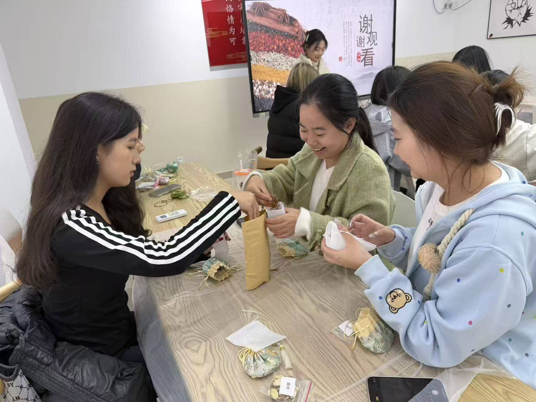 活动现场设置了丰富多样的互动环节。在专业讲解中,同学们重温了“三月茵陈四月蒿”等蕴含时节智慧的中医歌诀,深入理解中药采集与自然时序的紧密联系。随后,大家亲手参与中药香囊制作,在实践中辨识药材、感知药性,增强了对中医药的直观体验。现场问答环节气氛热烈,答对问题的同学获得了艾草锤等特色礼品,进一步激发了大家学习中医药知识的兴趣。