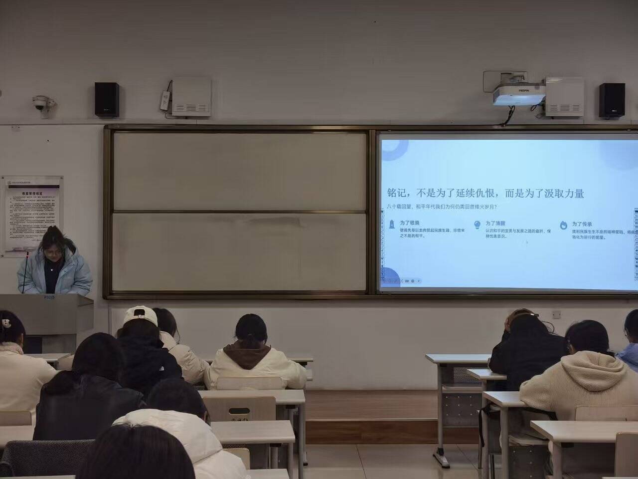 活动伊始,同学们学习“铭记,不是为了延续仇恨,而是吸取能量”的深刻内涵。随后的分享环节,通过一张张老照片、一段段档案记载,再现了当年师生们辗转办学、救护伤员、投身革命的峥嵘岁月,这是当今山一大学子需要继承和发扬的光荣传统。这些扎根于校史的真实故事,让抗战历史变得可触可感,让红色基因与公司文脉紧密相连。